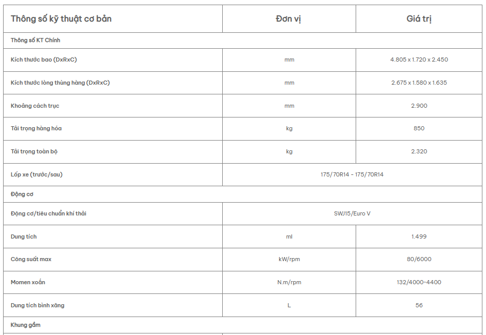 Xe tải nhẹ thế hệ mới SRM T35 sở hữu thiết kế năng động, hiện đại kết hợp cùng động cơ 1.5L mạnh mẽ, bền bỉ. Với tải trọng hàng hóa lên đến 990kg và nhiều tùy chọn thùng hàng, T35 là giải pháp vận chuyển lý tưởng cho cá nhân, hộ kinh doanh và doanh nghiệp vừa và nhỏ. SRM T35 được thiết kế với 3 phiên bản thùng tiêu chuẩn: thùng kín, thùng lửng và thùng mui bạt. Cùng SRM Kim Hoàng Hảo tìm hiểu thông số kỹ thuật của từng phiên bản thùng xe dưới đây: