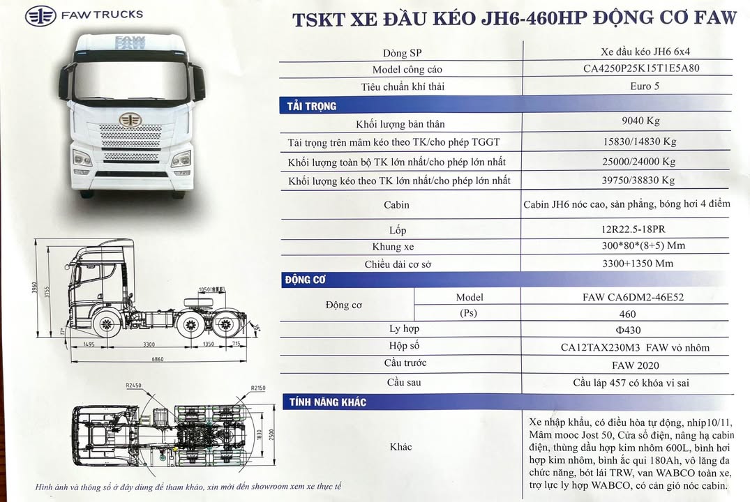 Phiên bản đầu kéo𝗙𝗔𝗪 𝗝𝗛𝟲-𝟰𝟲𝟬 được tập đoàn FAW Group Corporation ra mắt là phiên bản nâng cấp và kế thừa những tính năng ưu việt của Faw 430hp tại thị trường Trung Quốc cũng như Việt Nam.